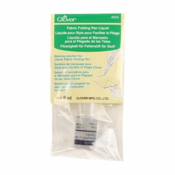 Clover Fabric Folding Pen Liquid is a marking solution refill for the Clover Fabric Folding Pen. Fill dedicated pen with water, and add a few drops of marking solution. Marking solution may turn Yellow, but this poses no problem for use. Fabric Folding liquid Refill for the Clover Fabric Folding Pen. 8ml Size