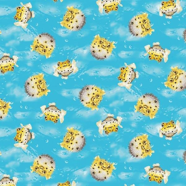 Coral Reef Aqua Puffer Fish By Lori Anzalone For Studio E Fabrics